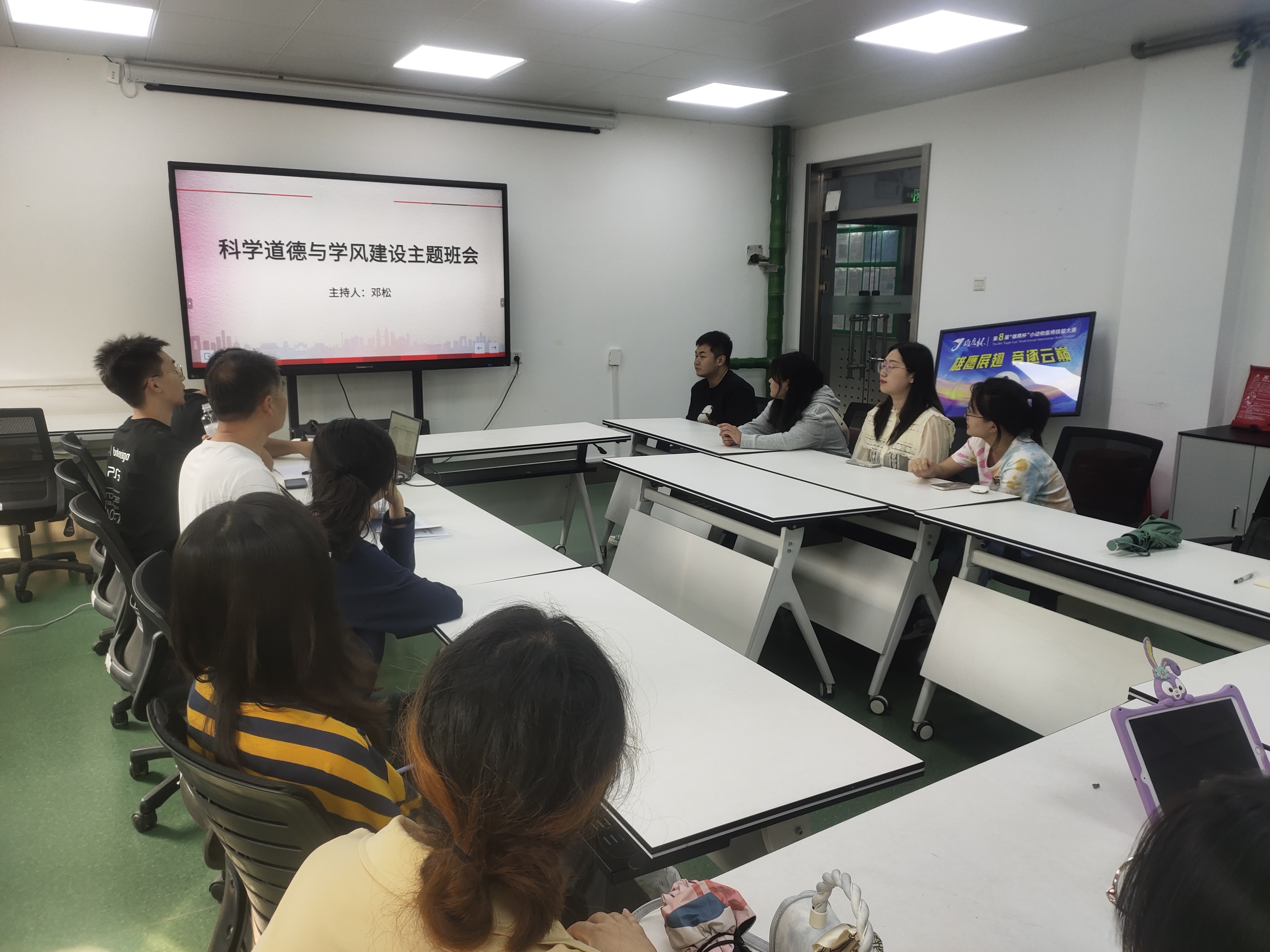 2023年9月19日植物科学学院在201会议室召开科学道德与学风建设班会,会议由研究生辅导员邓松老师主持。