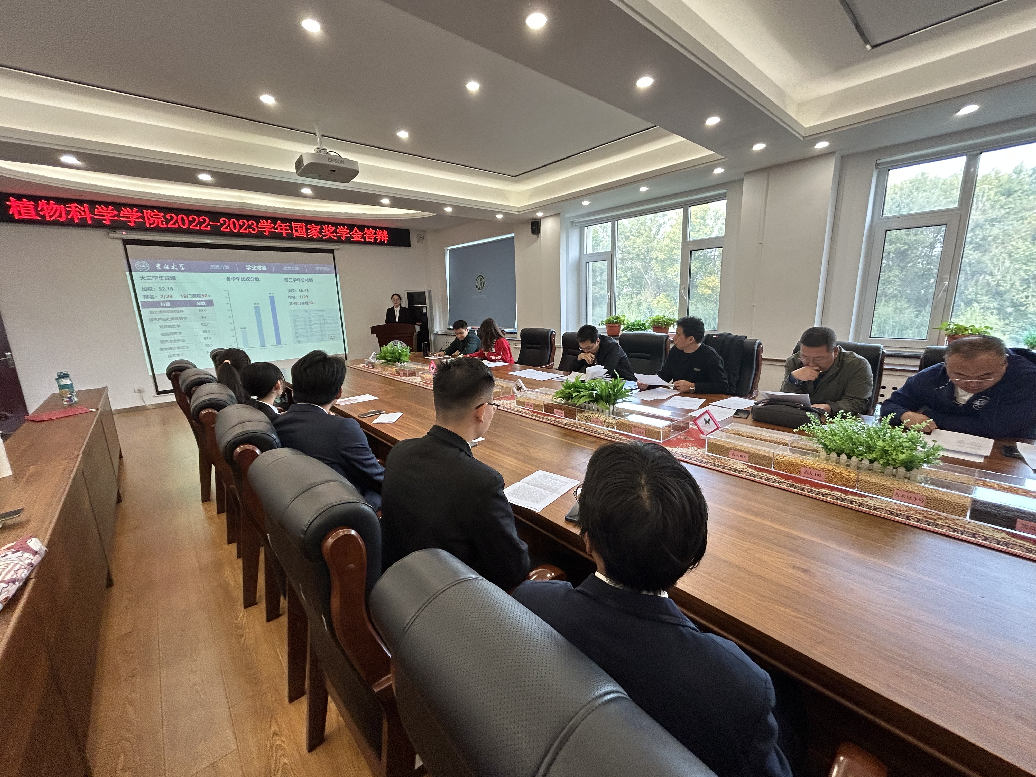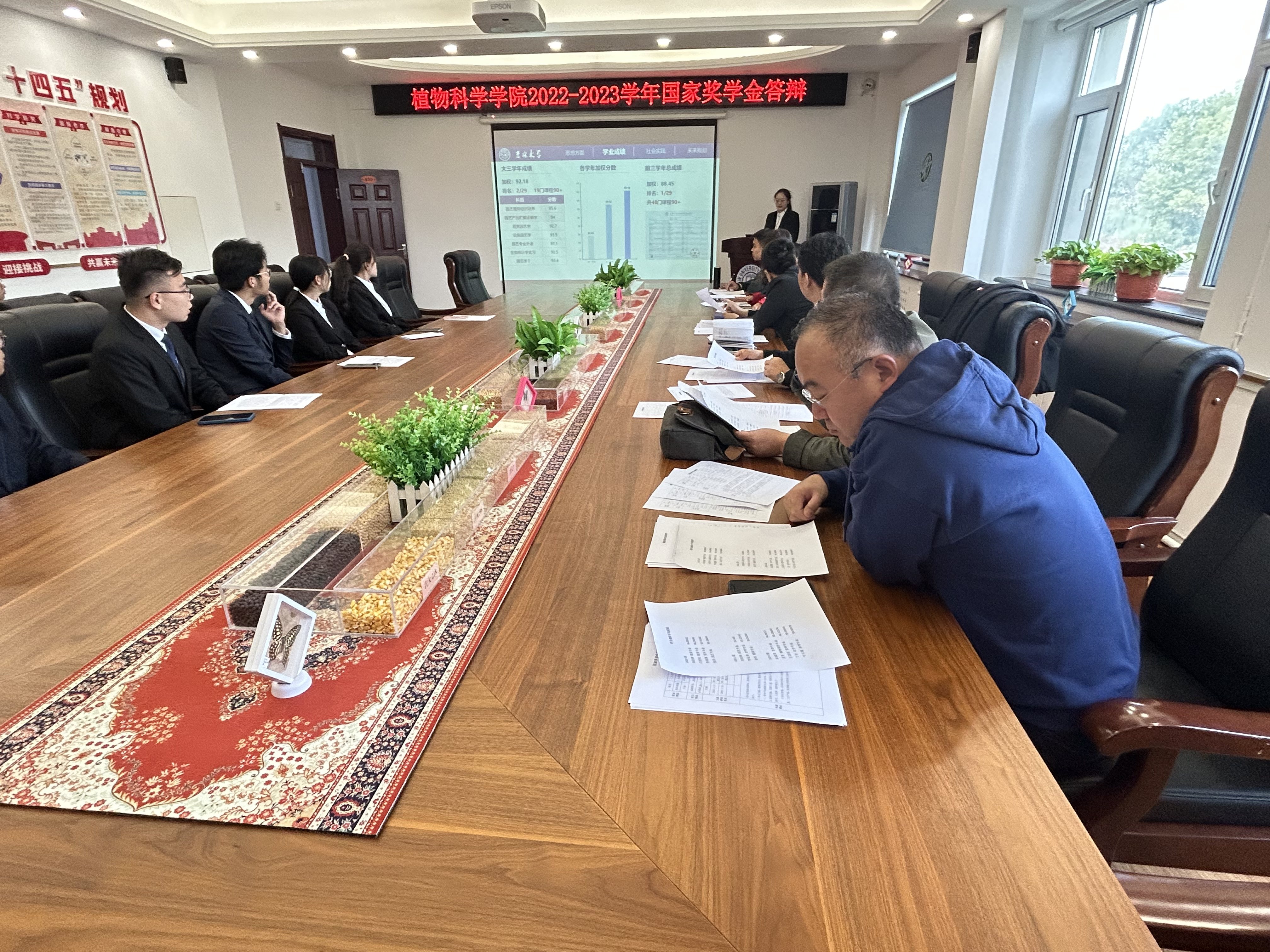 为激励全院本科学生勤奋学习,努力进取,德智体美劳全面发展,充分展现植物科学学院学子们的综合能力。根据学校国家奖学金评审工作总体安排。植物科学学院于2023年10月8日上午在植物科学学院楼四楼会议室召开2022-2023学年国家奖学金评审答辩会。植物科学学院全体领导班子、学生工作办公室全体辅导员以及学生代表,作为评审小组出席了本次答辩会。