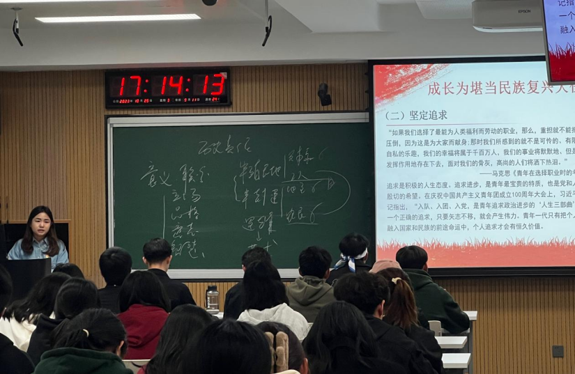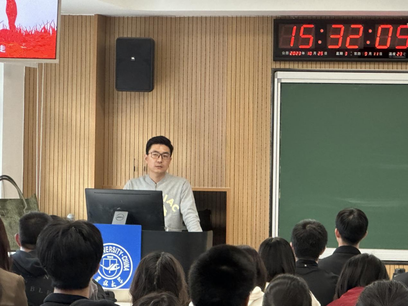 随后,马克思主义学院副教授支继超进行本次培训课程讲解。支继超从共青团基础知识、党的二十大关于青年的论述、团的十九大精神、习近平总书记的“青年观”四个方面对入团积极分子进行思想论培训。强调每一位入团积极分子要明确个人入团的目的和团员应承担的责任,增强历史使命感责任感,为实现中华民族伟大复兴的中国梦贡献智慧和力量。培训课程尾声,支继超将马克思的一句名言赠予同学们,希望同学们自觉把个人理想追求融入国家和民族事业中,努力书写无愧于时代的青春之歌。