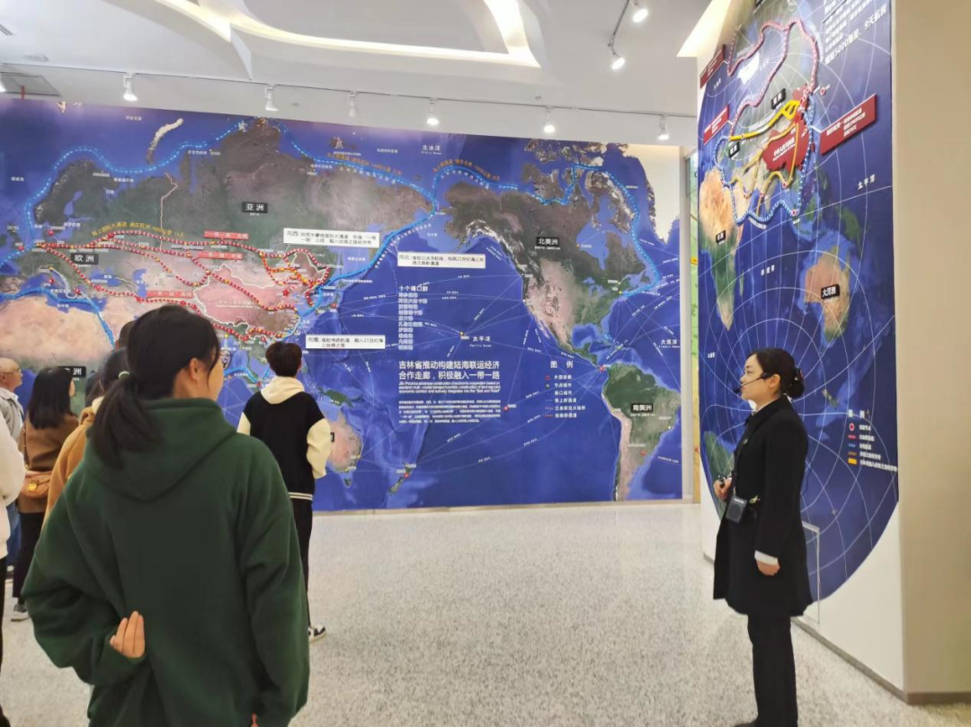 在讲解员的带领下,大家来到了位于展览馆二楼的长春市城市规划展区。该展区主要展现长春市积极响应国家政策,对未来三十年的城市发展策略、各个城区的大致规划以及相关成就(一带一路、长吉图、海绵城市、伊通河工程、旧城改造提升等等)的总结。