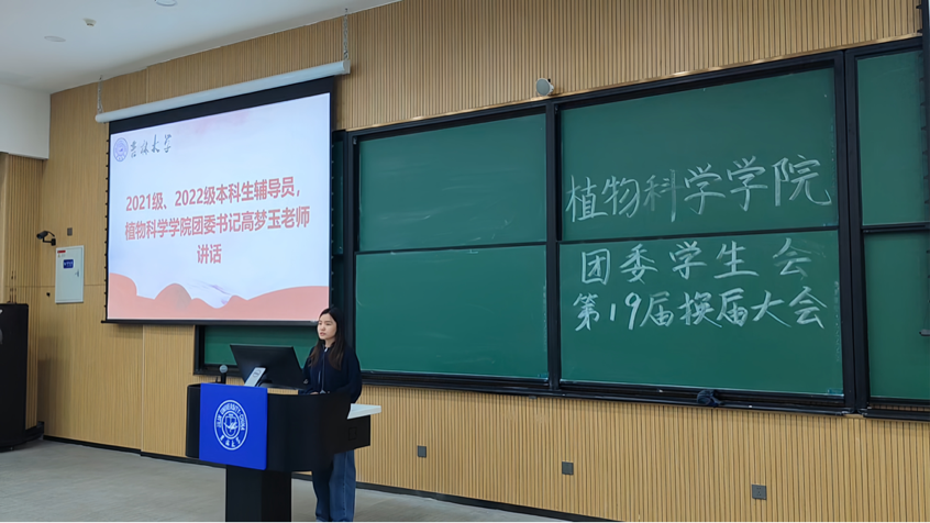 为全方位促进我院学生组织的蓬勃发展,庚续我院学生干部以身作则、率先垂范的卓越风采,积极推动学生组织建设,植物科学学院第十九届团委学生组织换届大会于11月8日在吉林大学中心校区敬信教学楼F区第九阶梯教室召开。植物科学学院团委书记高梦玉,本科生辅导员冯振宇及兼职辅导员薛傲然参加活动。第十八届、第十九届学生组织全体成员、志愿者参加活动,共同见证了这一重要时刻。